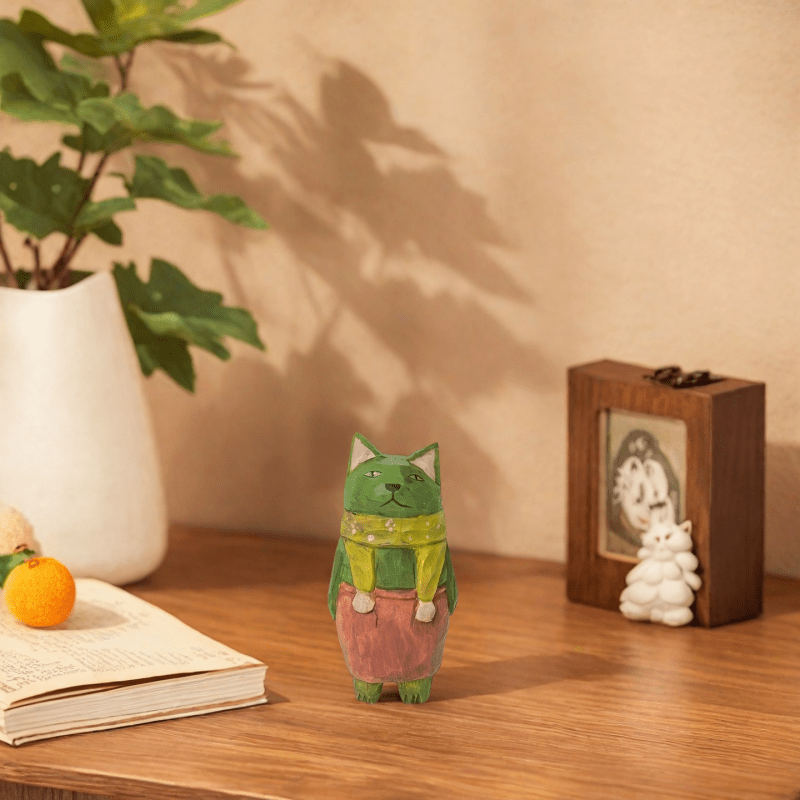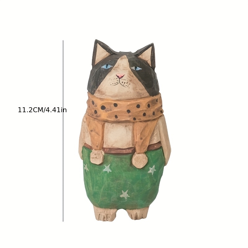 2 Handmade Carved Cats, Desktop Ornaments, Handicrafts Carved Cat Figurines, Desktop Creativity, Holiday Gifts, Party Table Centerpiece Decorations