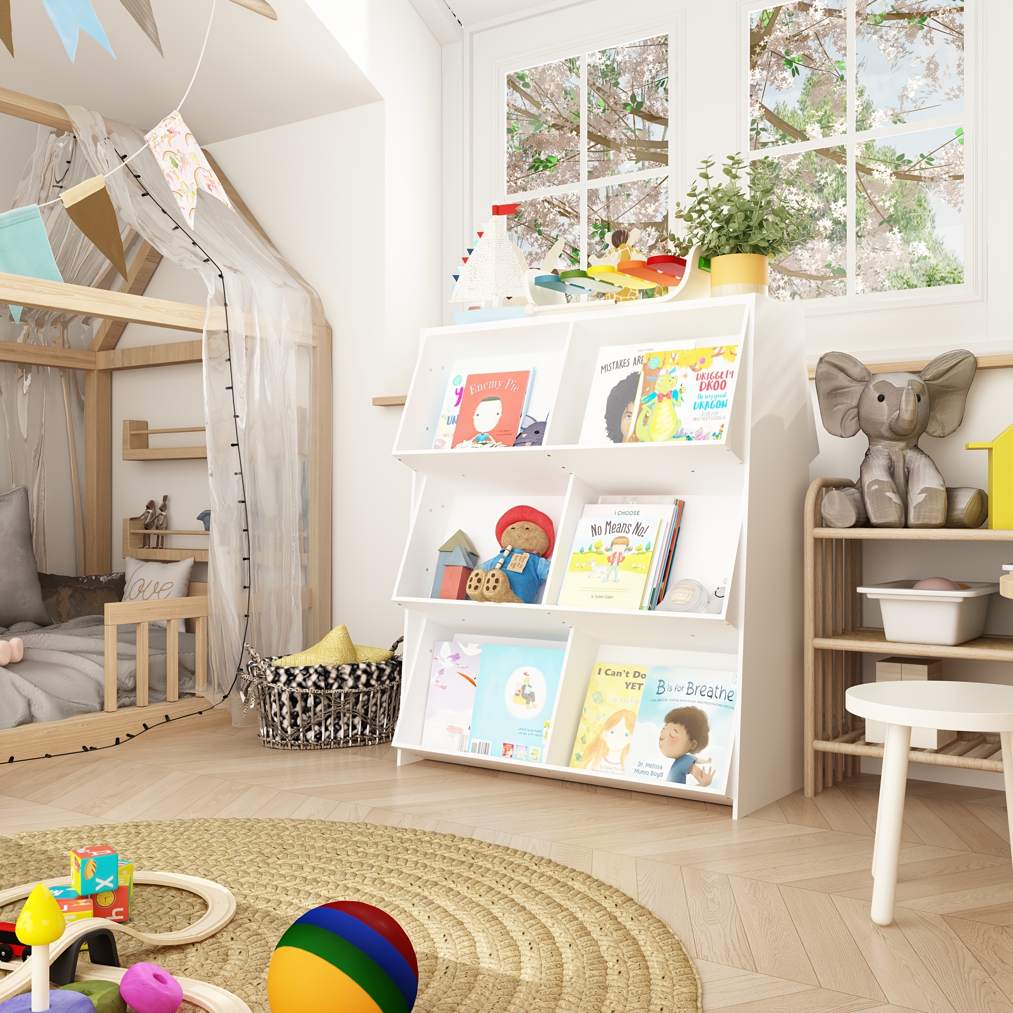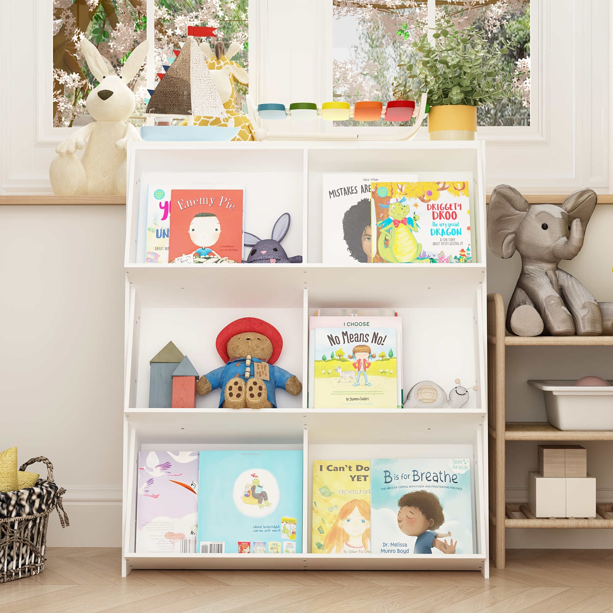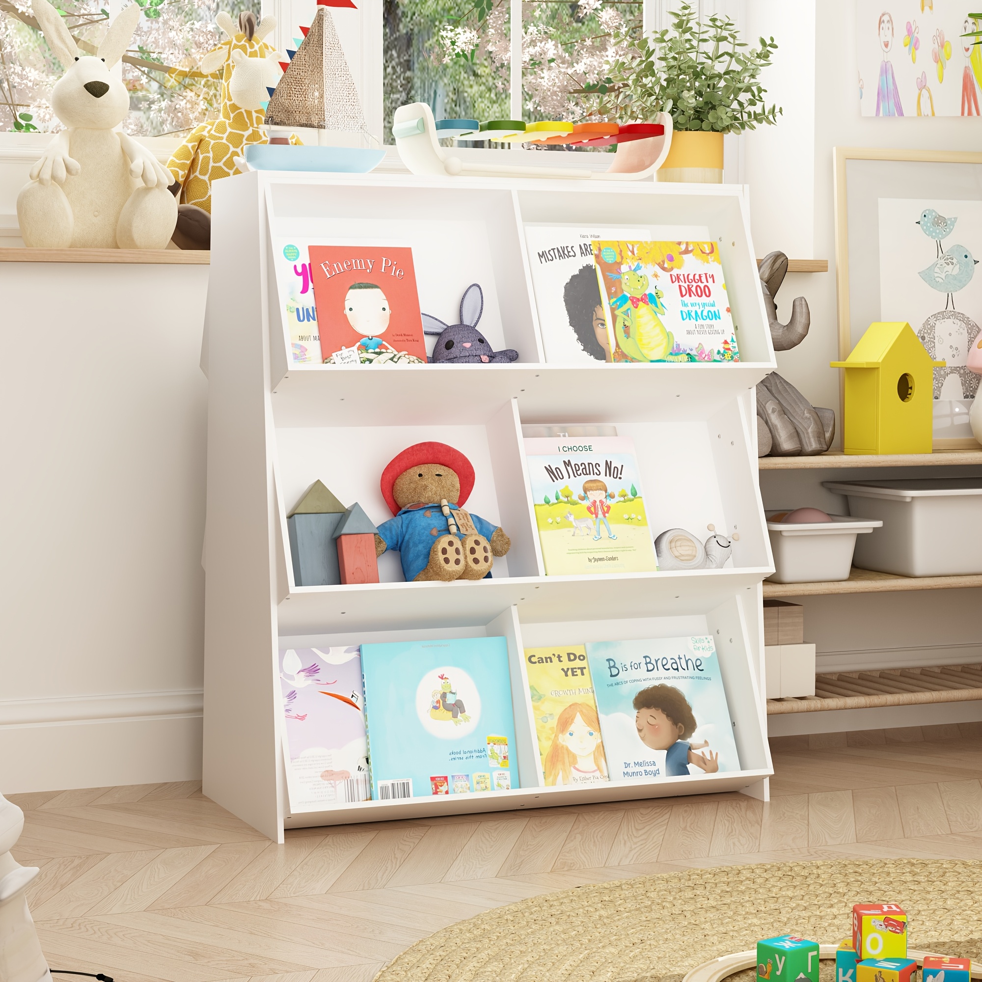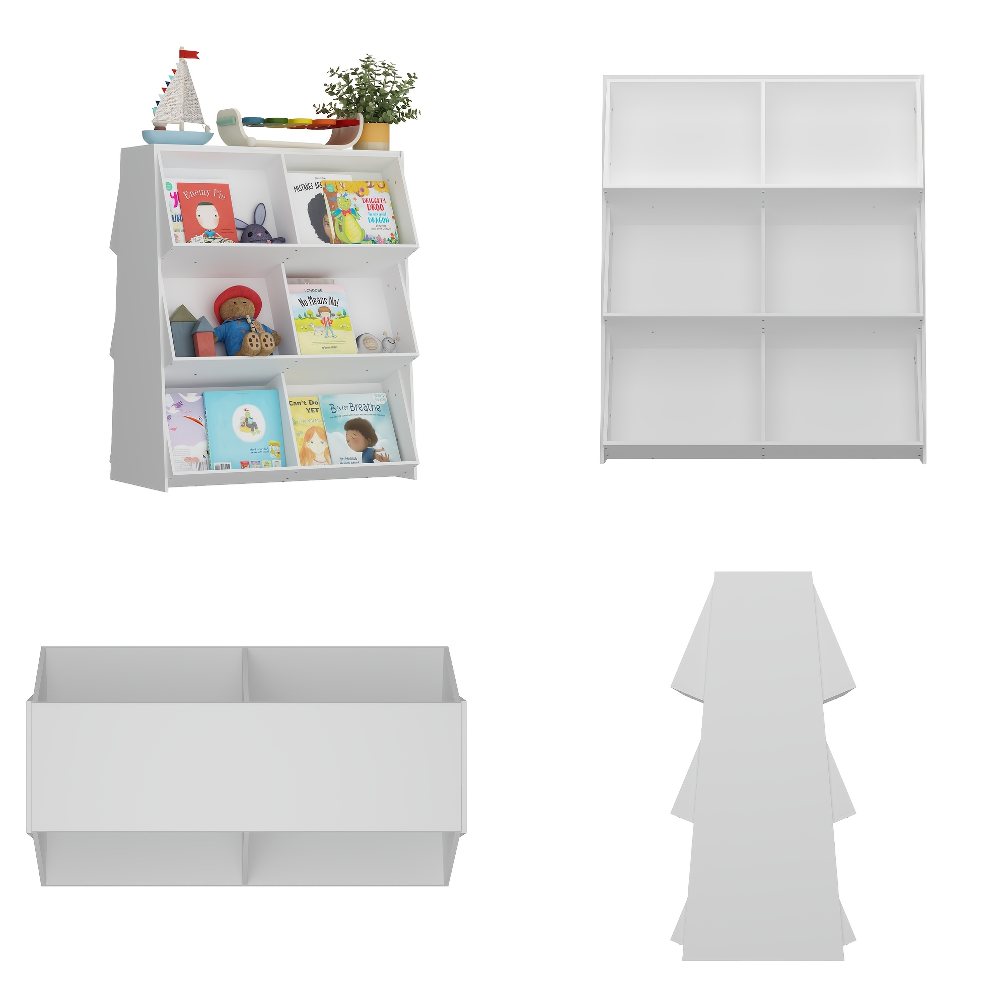 6-Cube Bookcase, Wooden 3-tier Open Storage Bookshelf, Modern Multipurpose Display Cabinet for Living Room, Study & Reading Nook, Modern Minimalist Design, White