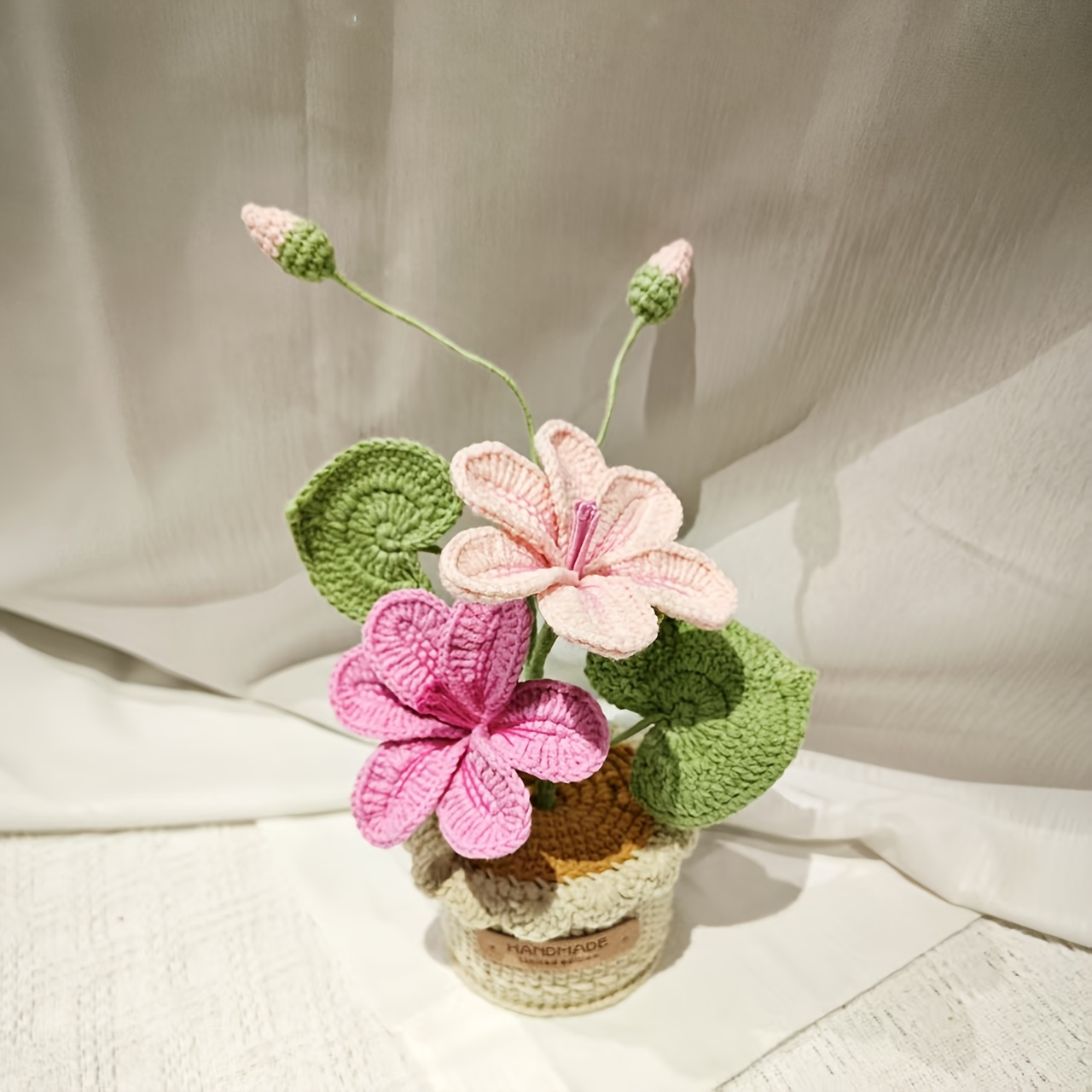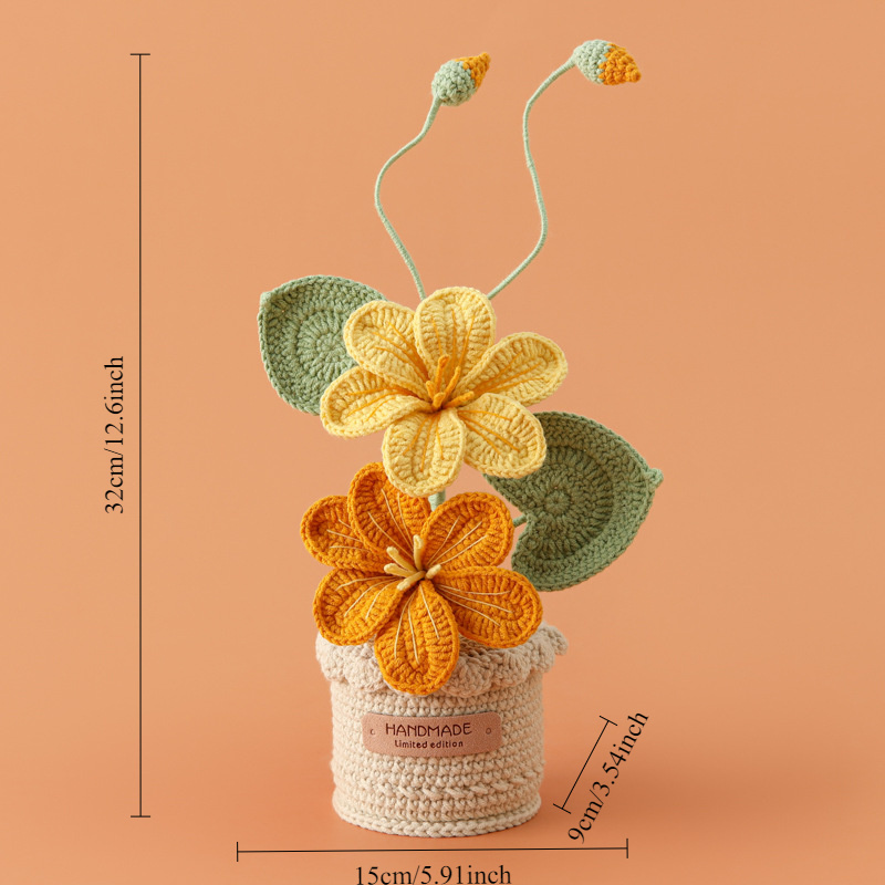 Crafted by Hand, This Crochet Potted Plant Decoration Features a Woven Flower Arrangement Perfect for Home Decoration. It Makes a Distinctive Handcrafted Gift for Occasions Like Mother'S Day, Father'S Day, Graduations